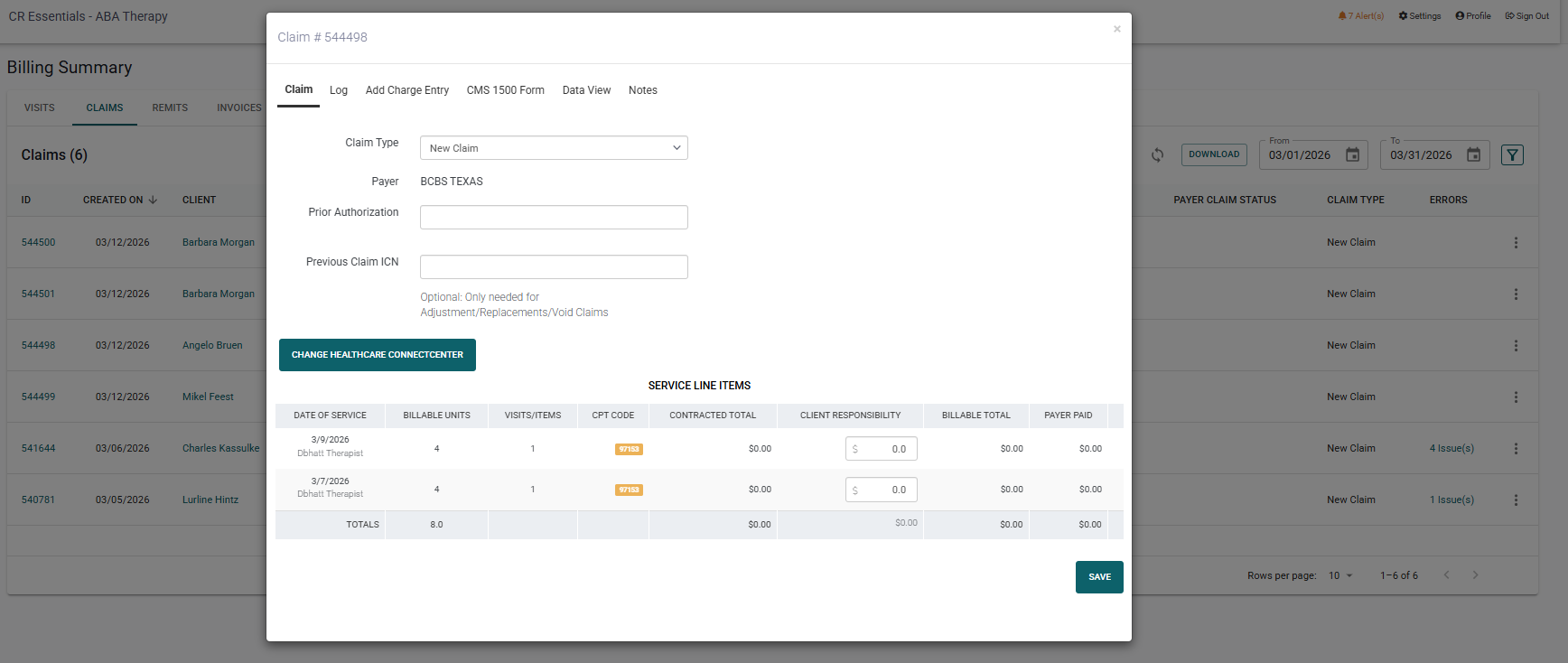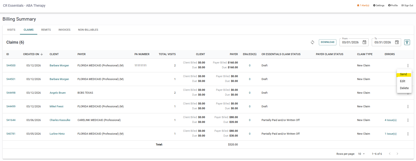 If you exit that pop-up window, you are able to send those claims to the clearinghouse by clicking the three dots and then the "send" option.