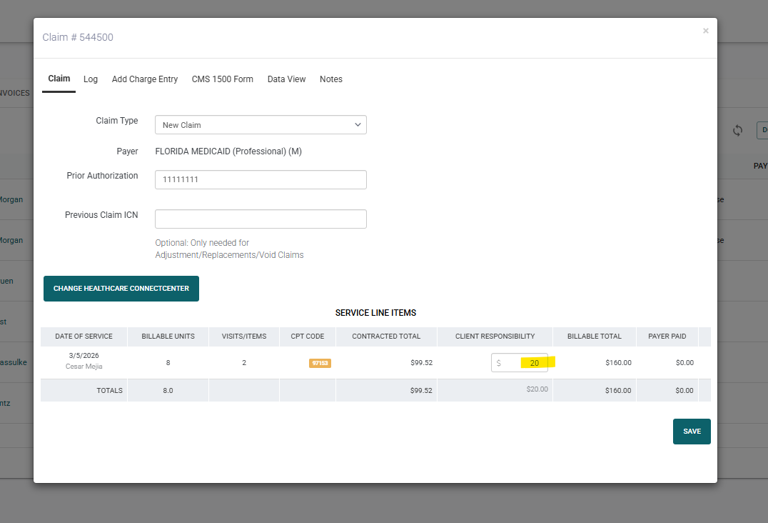 As a draft, you can click the edit claim button, which will open a pop-up window that will let you see the service line(s) and if you click the "CMS 1500 Form" tab you will be able to see and download the form. You can edit what is in this form by editing the fields where information is pulled from in the system (company settings, client's profile, therapist's profile, payer screen, etc.).