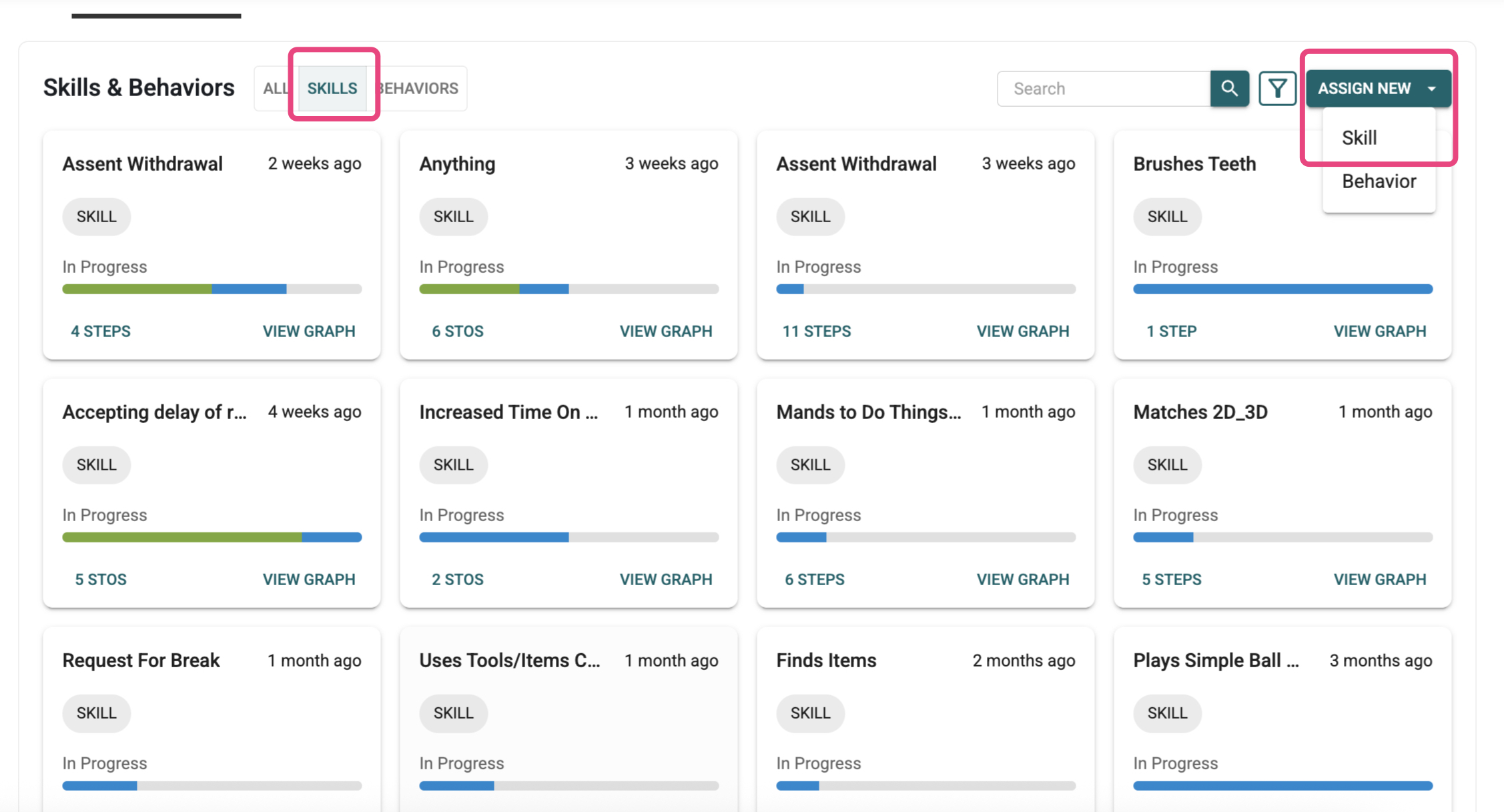 - Select a client then navigate to Skills and select Assign New/Skill.