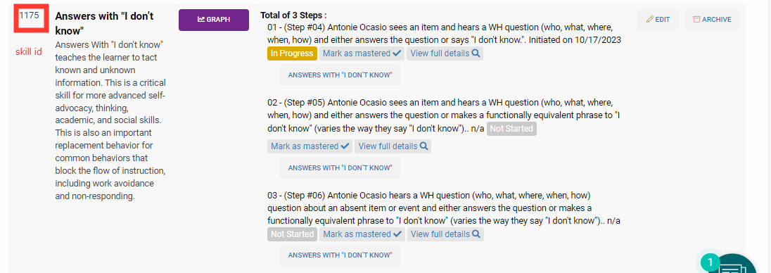 Go to the Behavior or SKill, in the client´s profile, and Check the 4-digit ID in the top left corner.
