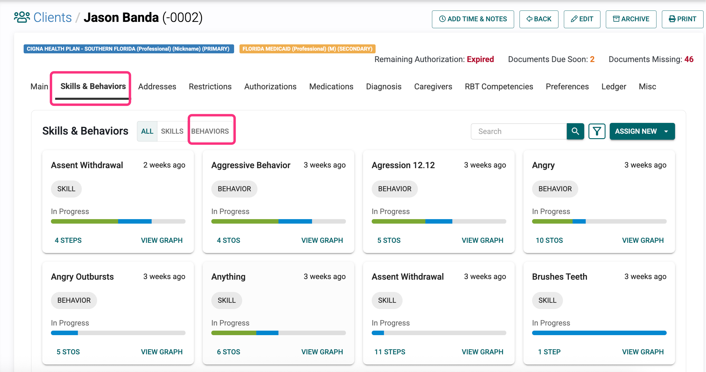 1. From the Client’s main screen, select the Skills & Behaviors tab.