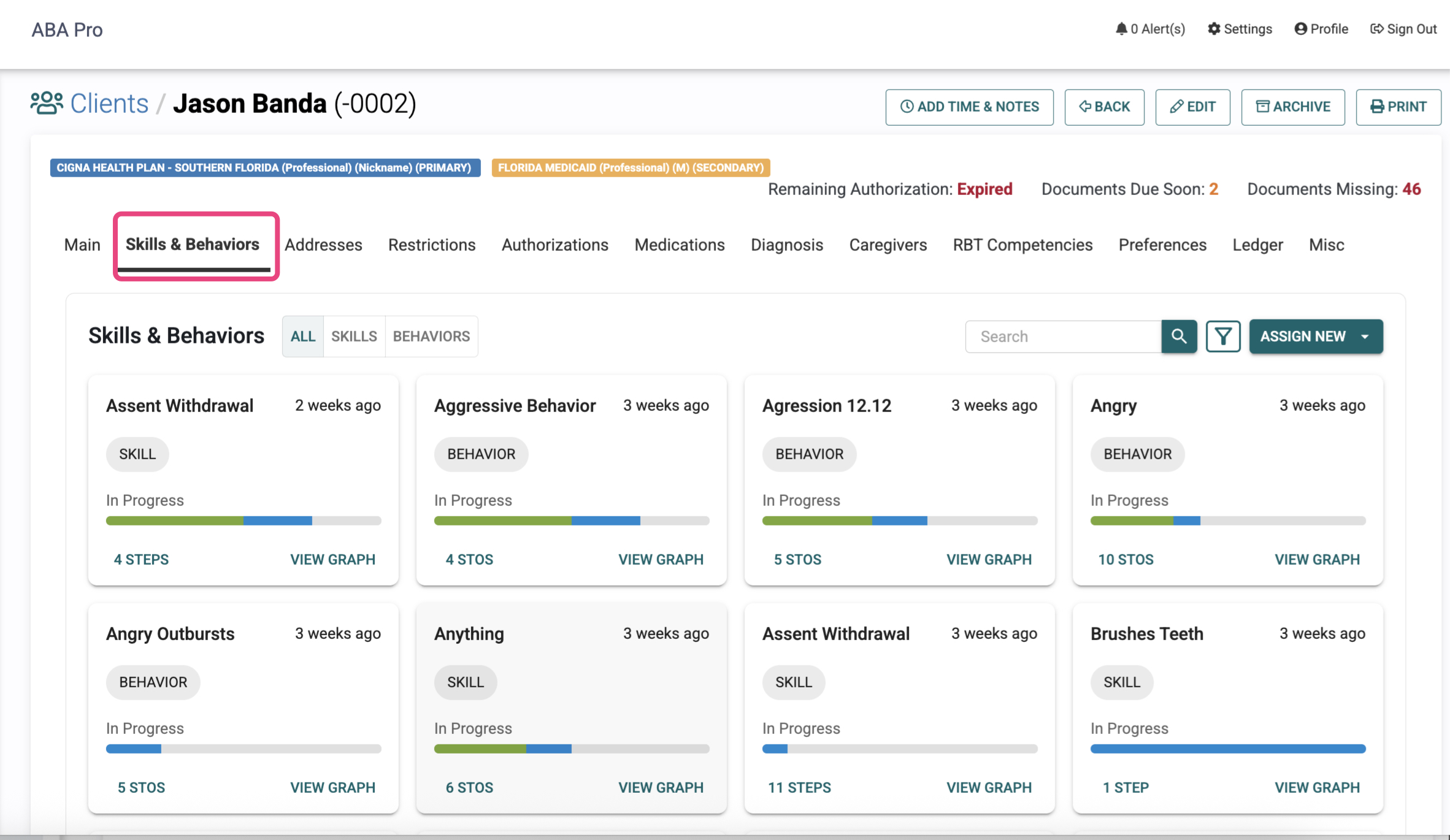 To start recording a skill, you have to first set up & assign the skill to a client. The page where you can set this up is accessible from the specific client’s profile page.